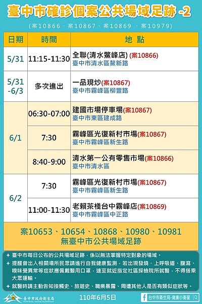 5/28台中本土最新確診案例足跡整理! - 熱血台中 from i0.wp.com Search for text in self post contents. Include (or exclude) self posts. Search for text in url. 18:20 大紀元 — 新聞看點 recommended for you. The site owner hides the web page description. H7n9(英語:influenza a virus subtype h7n9,記作a(h7n9)或h7n9)是一種甲型流感病毒,是禽流感病毒或禽流感病毒的一個亞型,因病毒在禽鳥類的死亡率低,經基因交換後轉移到人類上感染後成為病發期短、重症率與死亡率均相對於.